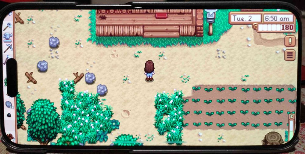 I have the iPhone 15 and the in-game screen has not been adjusted for size to accommodate the part of the screen where there are sensors/camera. This makes the game unplayable, because tools and items cannot be accessed. (They are trying to display on part of the screen that doesn’t exist.)