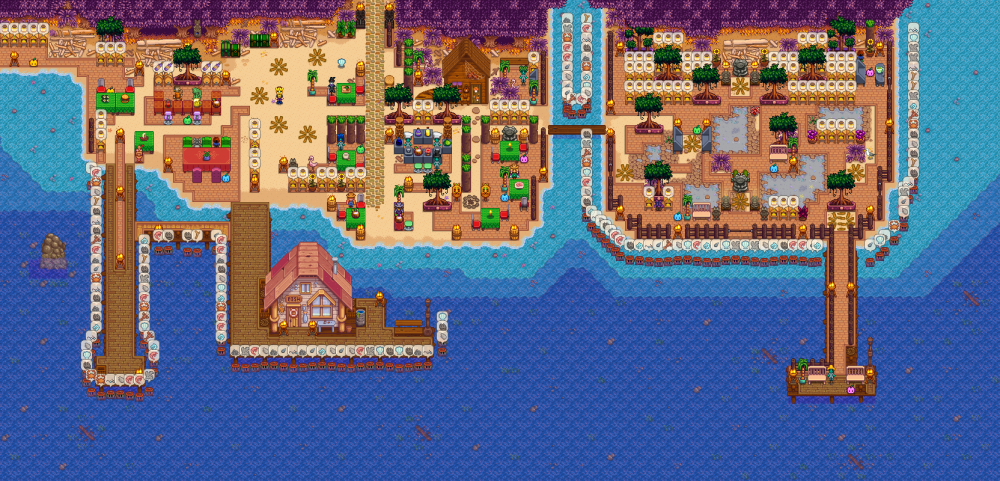 The night market is special because it doesn't use the same map as regular play/other festivals, everything you place on them stays there and isn't available until the map reappears the next year (though some stuff placed indoor like the submarine will be placed in chests for you, in 1.5 at least)