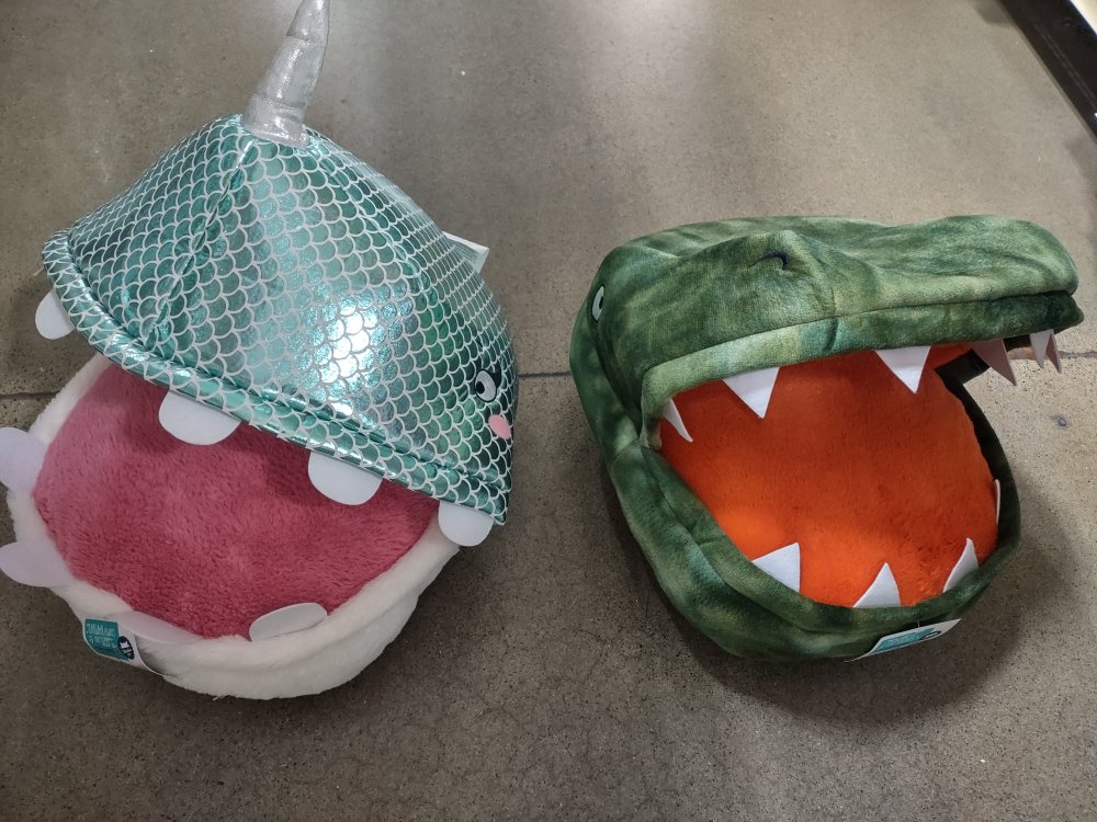 Do these come in extra large? i want my dog see my 60 lbs dog in one. usually he does the bed-eating so it would be nice to see the inverse for a change.Yes you too can let your pets nestle in the maw of a goofy toothed narwhal(?) And a dinosaur who ate the whole tub of cheesy poofs.
