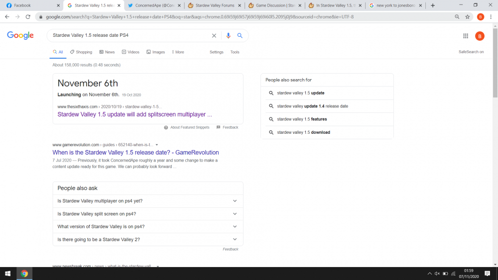 Can't believe everything you read on the internet I'm afraid. Just so you and others know, Stardew updates get a PC release date pretty close to launch, and then generally there's no announcement for consoles and mobile until the update is available on each of those platforms. We'll of course be posting any news about 1.5 here on the forums, and you can also follow CA on twitter for game updates.Saw this and got rather excited. Now I feel as flat as a pancake. Me and the Mrs were quite looking forward to playing split screen on PS4.
