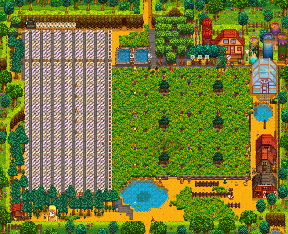 Also just wanted to mention that the stardew planner link you sent is completely empty and 50 barns is very unlikely if you wanted to do anything. the barns by them selves would take up 1400 tiles leaving basically none for the pigs to lay down truffles, even if the pigs filled up evvery tile available they would only fill up 2.1 truffles a pig which is just losing effieciency with 50 barns. 30 is pushing the limit of productivity vs. loss so maybe 34 is where having more barns equals less money. Not too far off of 27 tbh. So most money would be close to 1.25 million a day 1/3 days of the year making 93 million a year. Not as much as other methods.