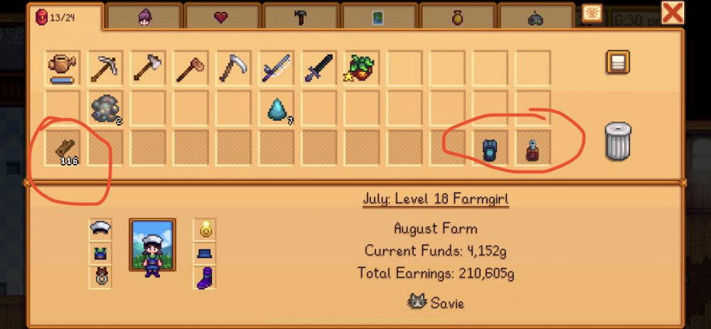UPDATE: glitch 2 keeps happening and i now have a stack of wood and a crystalarium stuck in that inventoryView attachment 12975