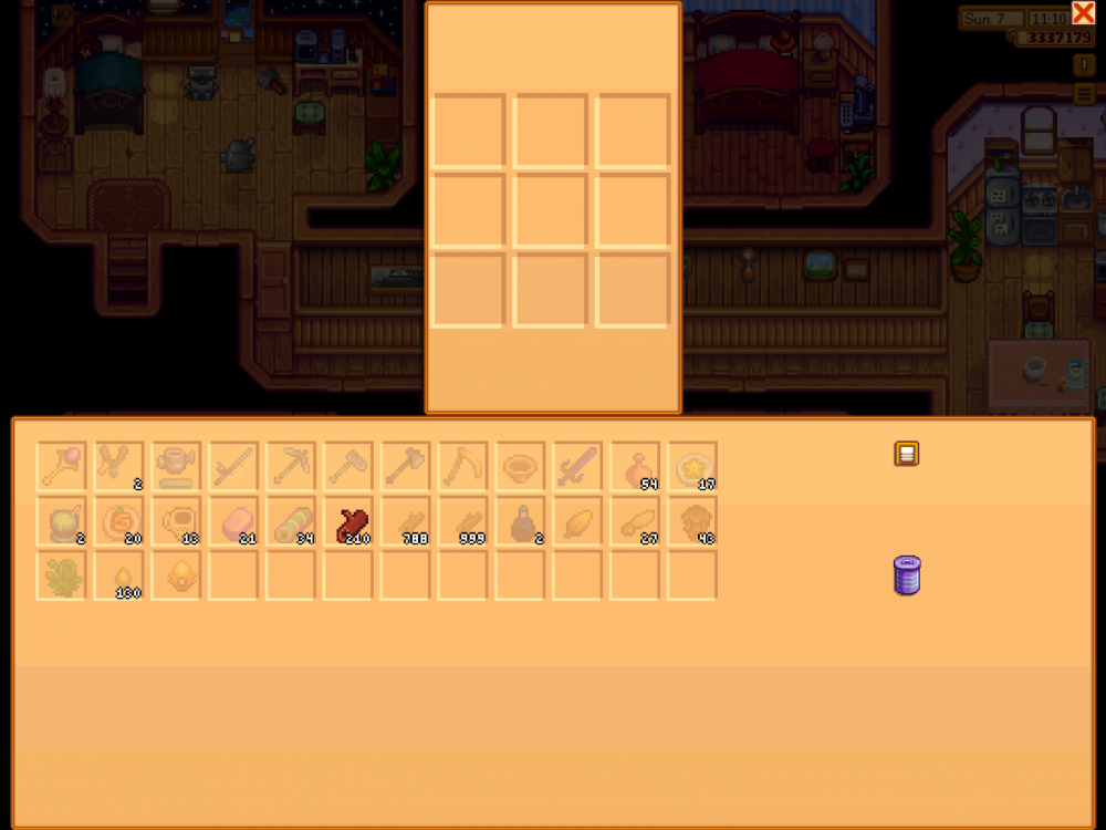 1- In the carpenter shop, impossible to drop the 80 hardwood to complete robin special order. I can’t even select them, and the size of the inventory seems off (it’s off centered)