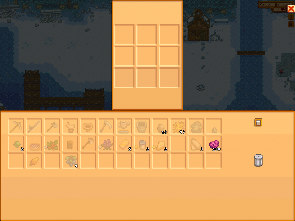 For people who are still having the issue placing things in the boxes for the large quests (Robin’s wood, Gus’s eggs etc) I was able to get it to work if I place the item in the top and right most slot from my inventory. From there I can click on the item and it will go into their inventory, but only from that slot. Hopefully this can help some people while we are waiting for a fix!