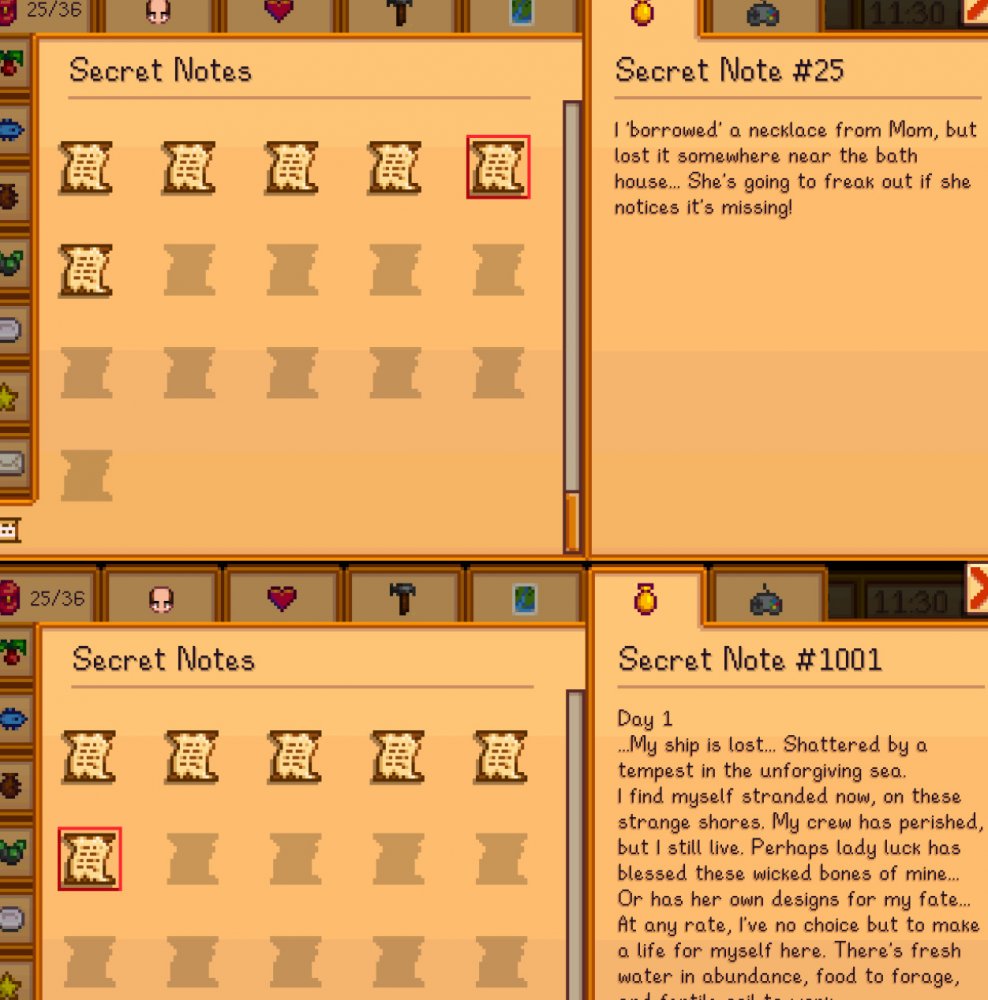 Fifth issue: journal scraps when read are displayed in the secret notes tab as secret notes #1001, #1002 and counting instead of journal scraps #1, #2...