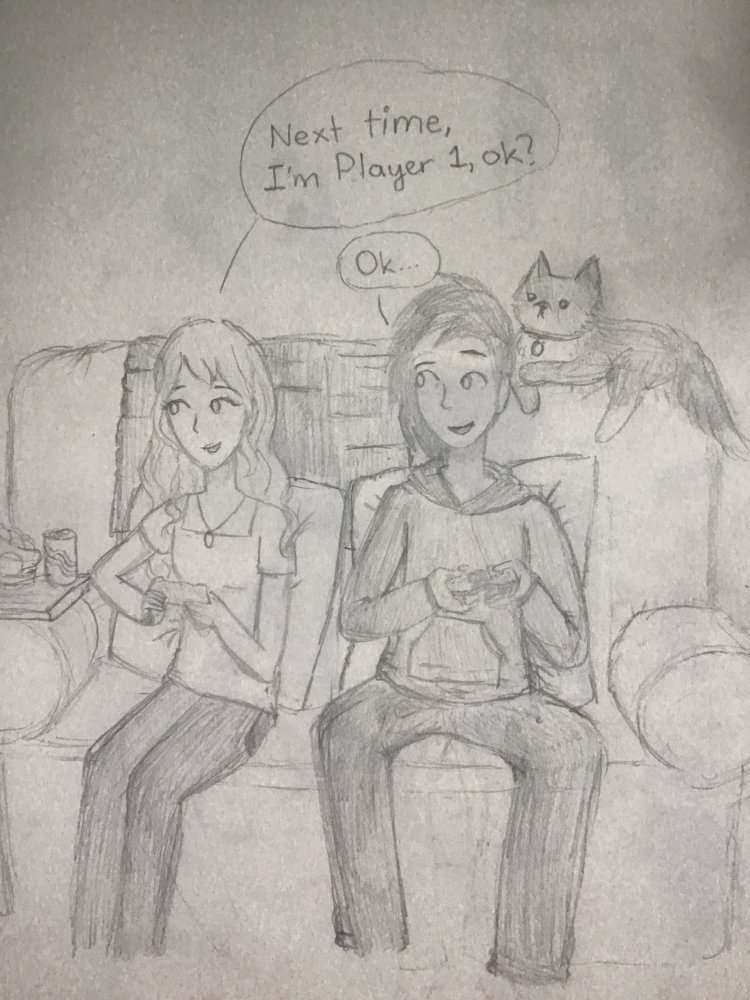 Quillmagic Farmer Sep 28, 2020 #22 Ok hi here’s my submission for Round three: It’s Seb (of course) playing video games with my farmer! And Misty’s on the couch because why not...