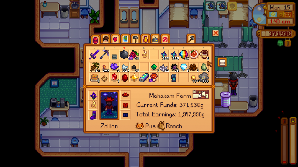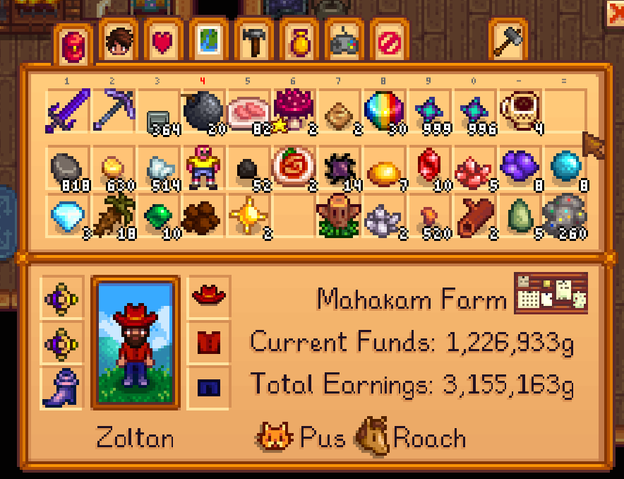 @Hill Myna you will need to know this too.Definitely a good point, and I touched upon it at some point in one of my many posts. After quickly firing up the game, so far in this save I've sold 616 iridium bars. Which corresponds to 924,000g with Blacksmith profession (which I now see is superior to Prospector), or almost half of total earnings in this save.