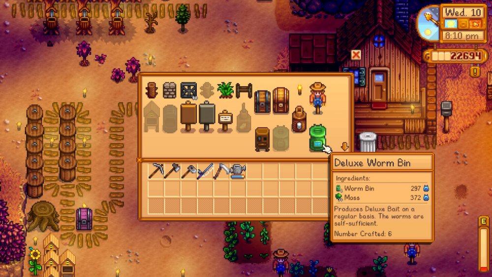 I also have this issue! It also allowed me to make deluxe worm bins with 297 non-existent regular worm bins. I do not have access to hardwood yet in this file, and haven't even made a regular one yet! I made 6 of them. Some of my sea and river jellies were used up in this construction, but I couldn't see what else was used.
