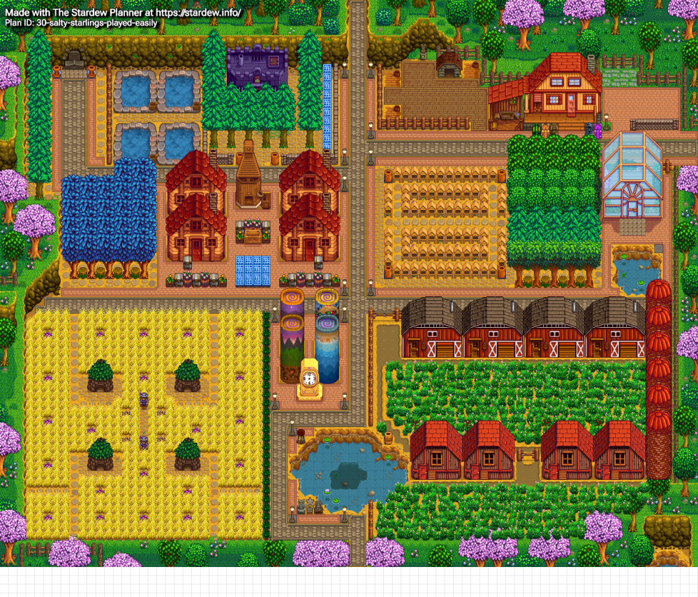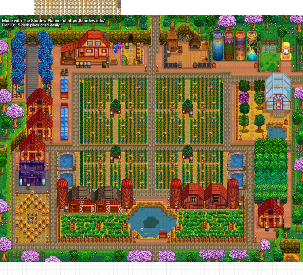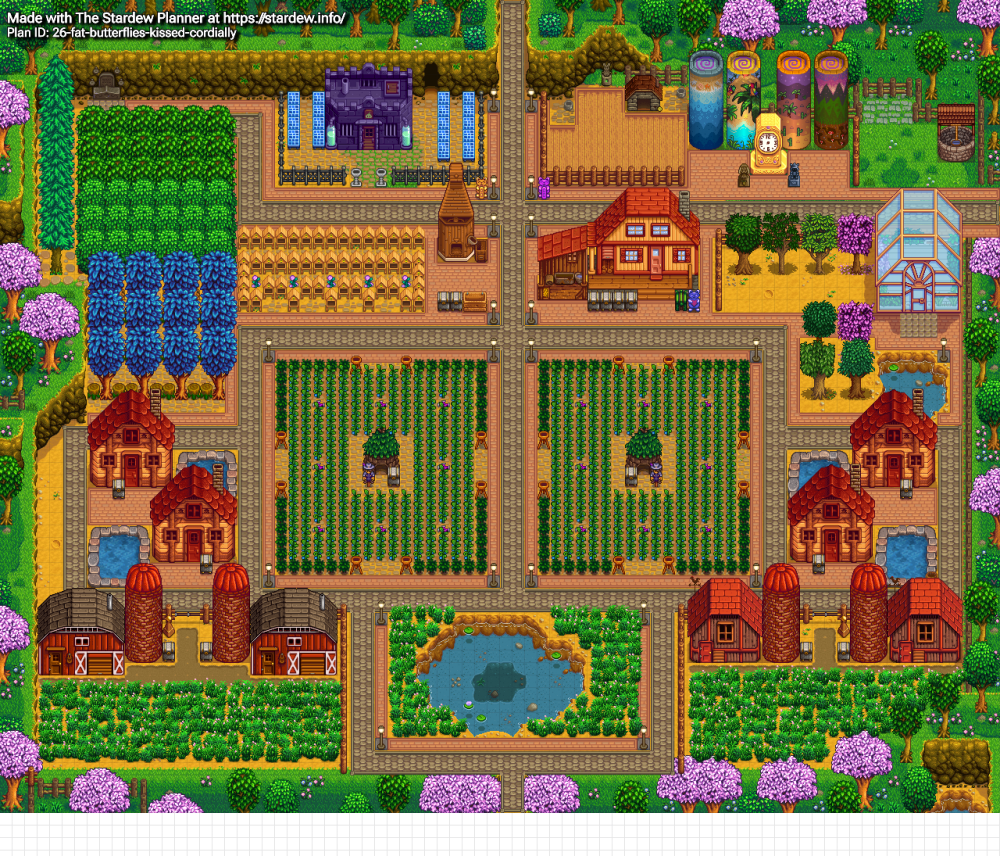 Hey guys. This is the first time I'm sharing a farm layout I made in Stardew Planner. For now, the Standard Farm is finished, but I still have a few other farm types to work on. lol