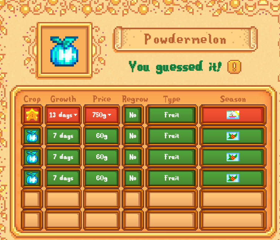 I solved today's Stardewdle!