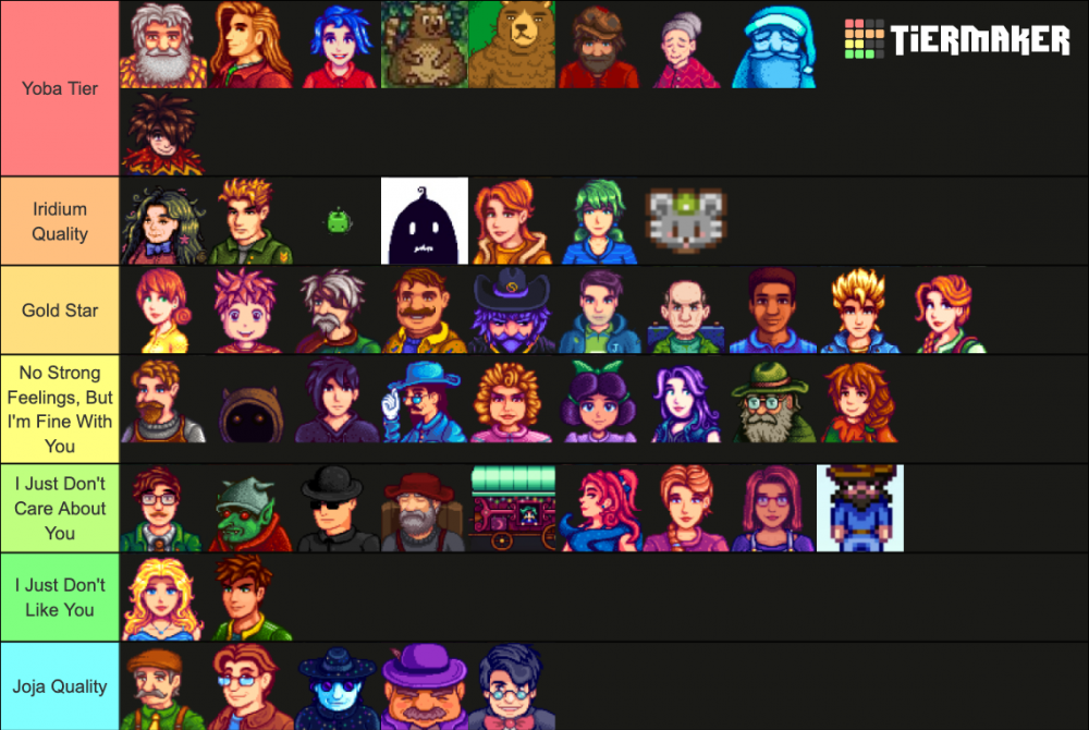 So I get it. Gil's the very definition of a taskmaster. But he's still #1 with Farmer Bobbi at the very top of the tier list as her pathetic attempts at putting in a minimum of effort are dwarfed (