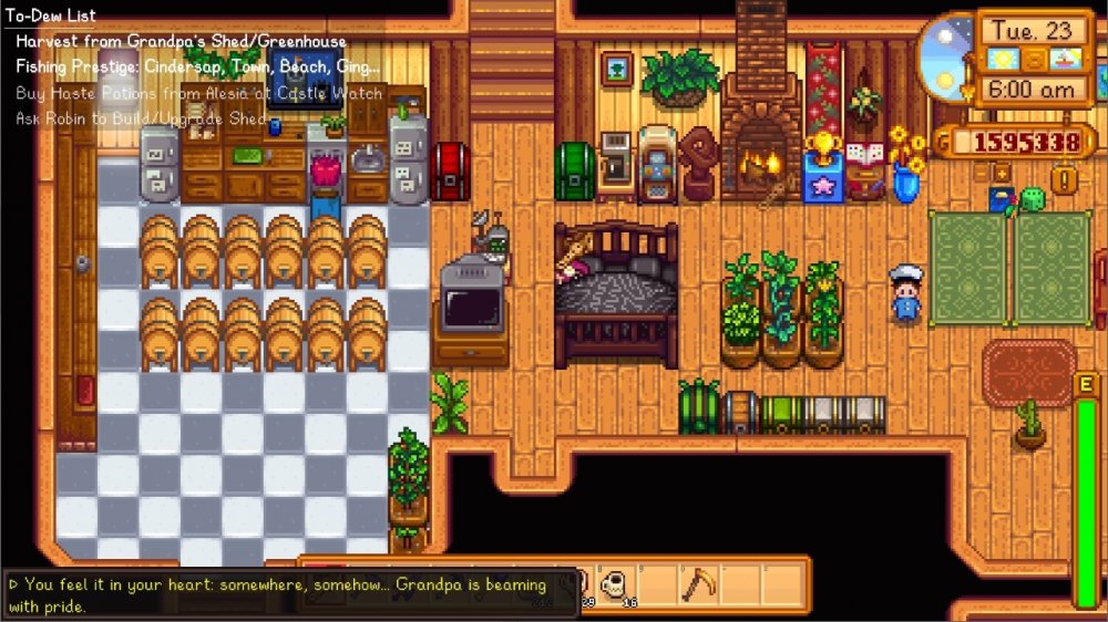 In between these, I had several instances where I had hit the triple Parsnips 3 times in a row. Also, in some 30 minutes of spinning using the Maximum bet, I had never spun a single combo that failed to pay out something -- when I wasn't hitting Triples, at least 1 Cherry had always managed to show up; only the Triple Cherries were quite elusive! I chose to call it quits after that last Screenshot as I had definitely possessed enough Qi Coins to purchase that Rarecrow #3 so that I might get that final crafting recipe for the Deluxe Scarecrow!