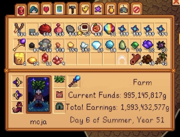On my Wilderness farm I reached Farming 1 on day 3, thanks to finding a skill book when fishing. Haven't spent enough time at night on the farm to see any monsters, but then again I'd rather wait until I've got a better weapon than the tools. Sure, the rusty sword isn't much better than the scythe, but I'd feel better about it. Restarted day 3 a couple of times after realizing there were no spring onions to gather, and then after noticing Robin put up a request for newly chopped wood, after I'd already cut down a few trees. Saw no reason to spend a lot of time and extra effort when I wanted to spend most of the time fishing.