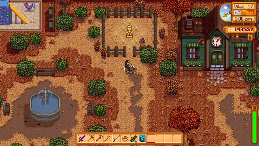Cleared my farm of everything except grass, which I will allow to spread until the last day of fall. I don't have any animals yet, apart from Toby the beagle and Roach the horse, but I have completed the Chef's bundle thanks to the traveling cart offering 5 truffles, the only animal product I needed for the CC, one day.
