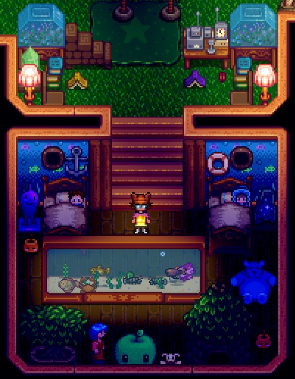 Looks like your family is safely hidden In a submarine or underground bunker…maybe cause they keep hearing those explosions in the night from all your iridium meteorites? Also Emily has substituted hanging out with thr stuffed Junimo since you’re too busy with your new found obsession with Journey of Prarie King. Are you out at the saloon playing that each night? Emily is like she used to love making clothes with me instead. 😢. I can’t figure that game out. I get killed before I can see any idea of which one is me and which one is the bad guy. 🤣