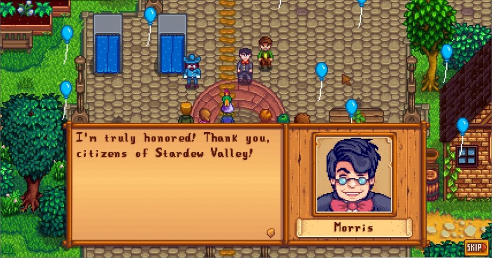 I guess that my farmer Max's role in these developments is no secret. He had maximum hearts with Pierre, Caroline, and Abigail only a day before Morris' grand project was complete. But this just seconds after Morris' announcement:
