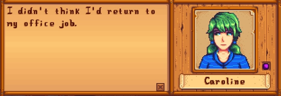 I did about 5 days of JotPK and burned out on SDV entirely, LOL. Just got back to playing it today after a break. Nothing bad but it's like I mentioned in another topic here: When I start Stardew up I don't have a plan nor do I remember what my plan was from the last time I played. So it's a mostly clean slate and that first day is all the basics, Check: