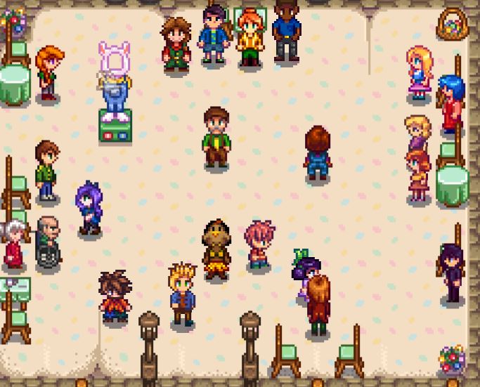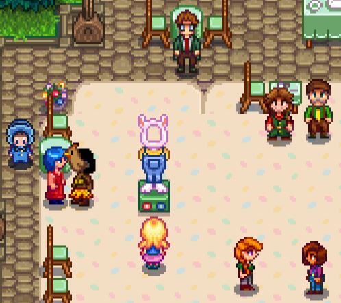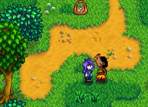 Spring 13 arrived with it's dual responsibilities: Swap out the aged Starfruit Wine for the baby Wine and ship it all out at once before the market notices it's flooded, depressing prices. Works every year! Later in the day is the Egg Hunt. This year Bobbi came up with another of her stupid ideas which she is completely unable to contain even to her family and thus must share with the town.